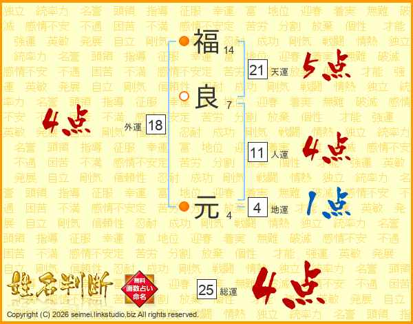 福良元さんの総運は25画の4点!