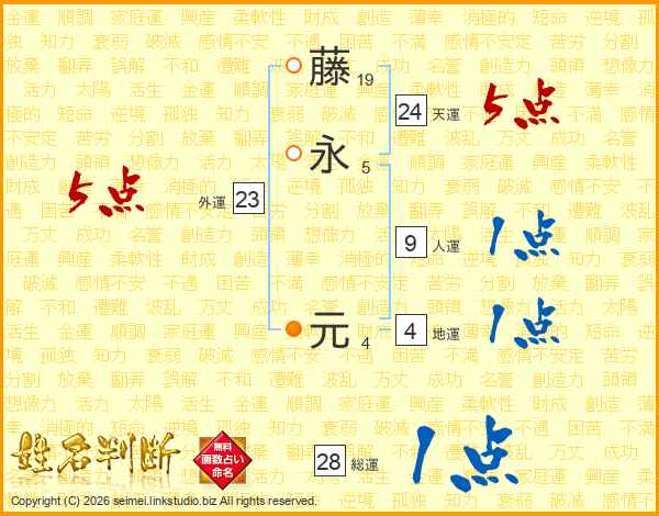 藤(19画)永(5画) 元(4画)