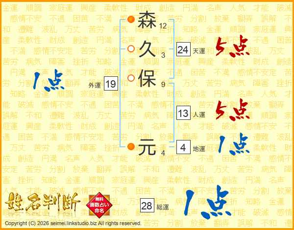 森(12画)久(3画)保(9画) 元(4画)