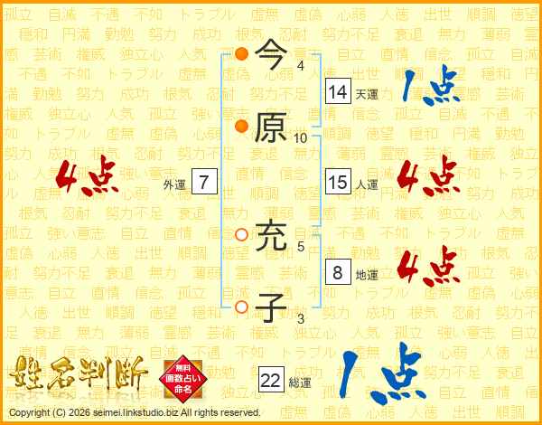 今原充子さんの総運は22画の1点!