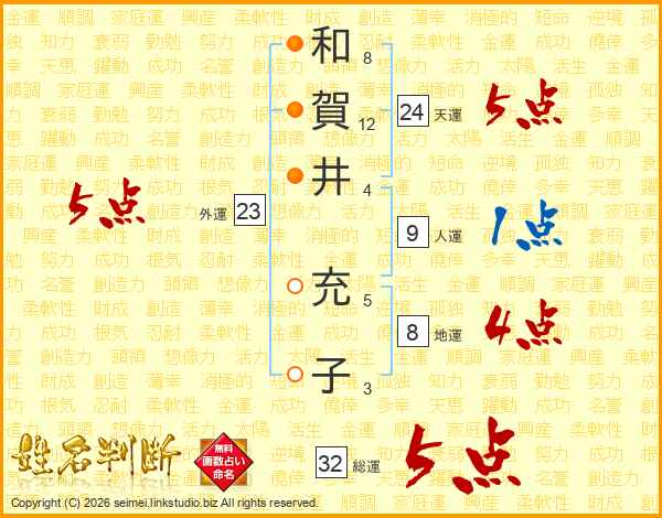 和(8画)賀(12画)井(4画) 充(5画)子(3画)