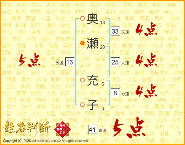 奥瀬充子さんの天運は33画の4点!