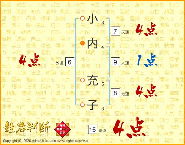 小内充子さんの総運は15画の4点!