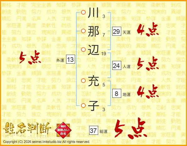川那辺充子さんの総運は37画の5点!