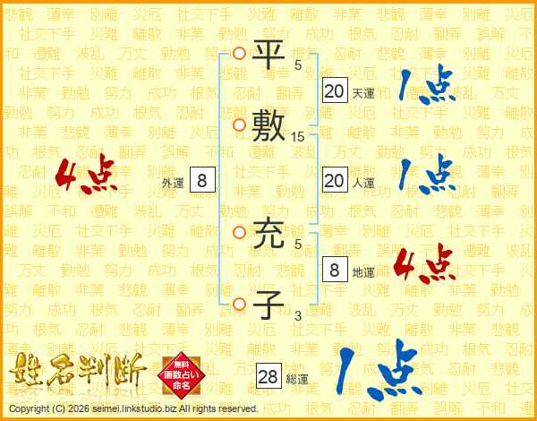 平敷充子さんの総運は28画の1点!