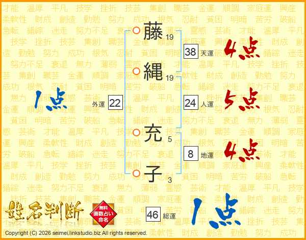 藤(19画)縄(19画) 充(5画)子(3画)