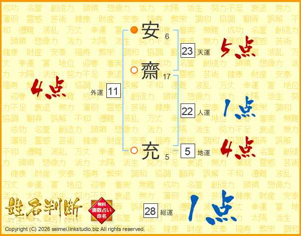 安(6画)齋(17画)  充(5画)