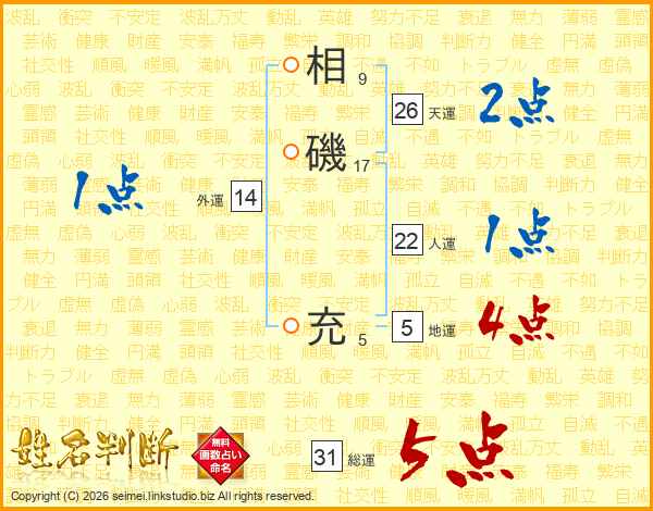 相磯充さんの総運は31画の5点!