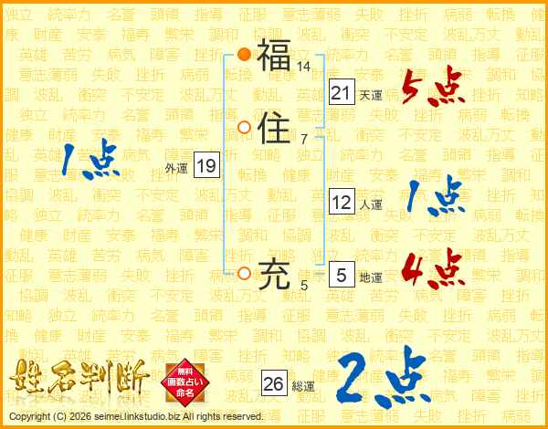 福住充さんの総運は26画の2点!