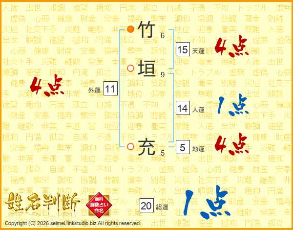竹垣充さんの総運は20画の1点!