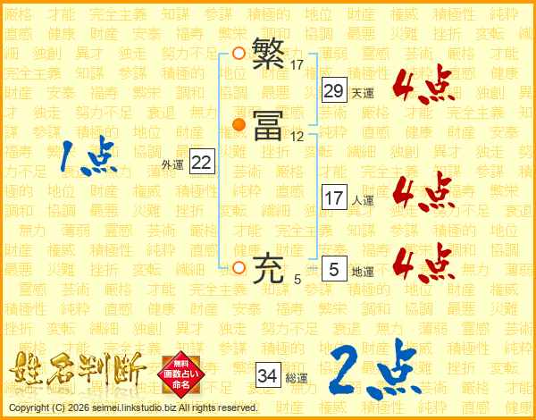 繁冨充さんの人運は17画の4点!