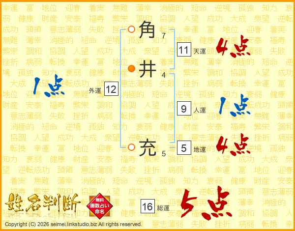 角井充さんの総運は16画の5点!