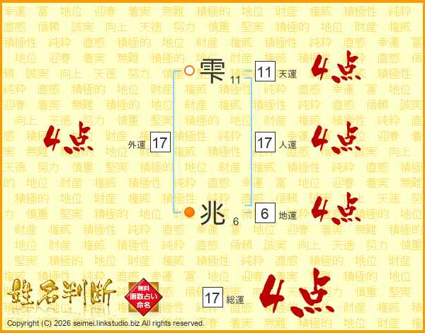 雫兆さんの総運は17画の4点!