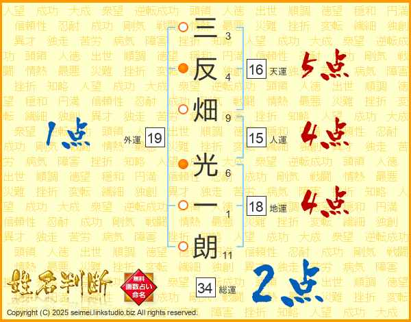 三反畑光一朗さんの人運は15画の4点!