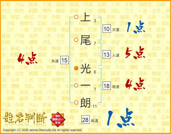 上尾光一朗さんの総運は28画の1点!