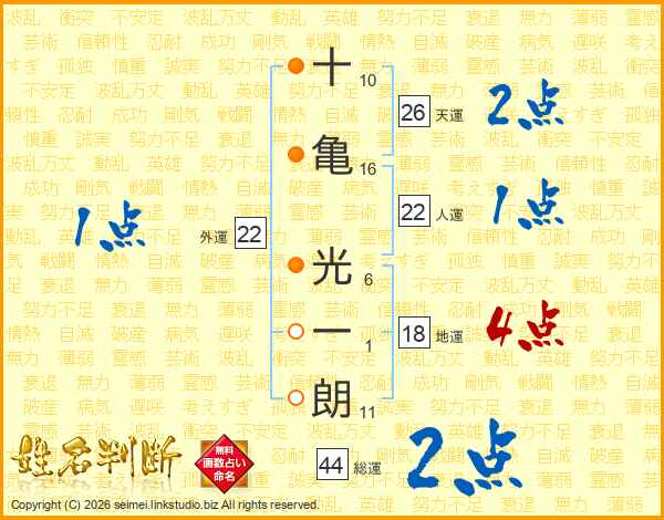 十亀光一朗さんの総運は44画の2点!