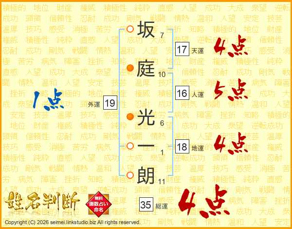 坂庭光一朗さんの総運は35画の4点!