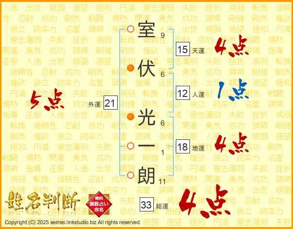 室伏光一朗さんの総運は33画の4点!