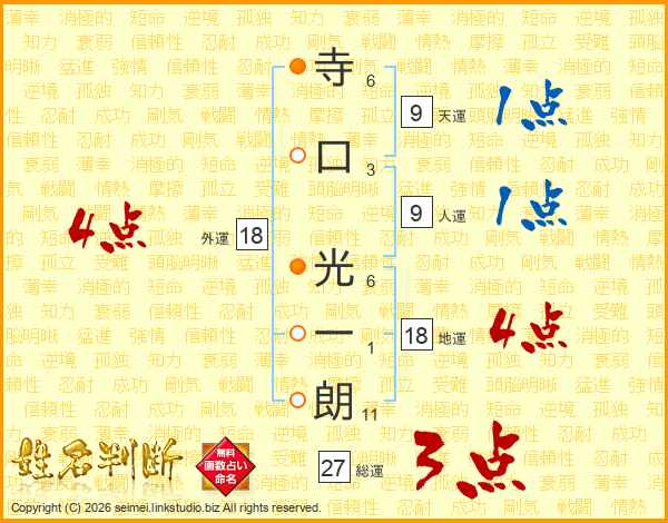 寺口光一朗さんの地運は18画の4点!