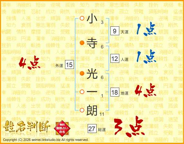 小(3画)寺(6画) 光(6画)一(1画)朗(11画)