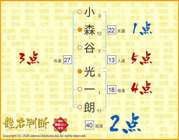 小森谷光一朗さんの人運は13画の5点!