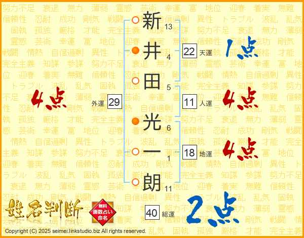 新(13画)井(4画)田(5画) 光(6画)一(1画)朗(11画)