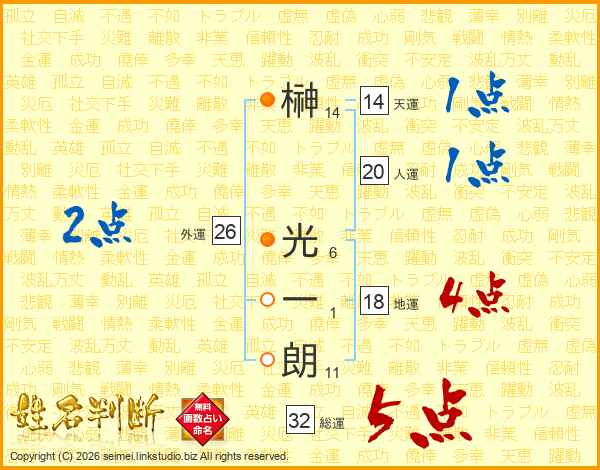 榊光一朗さんの天運は14画の1点!
