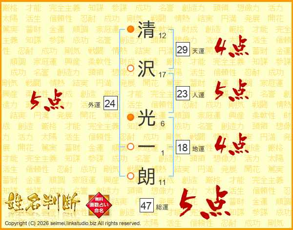 清沢光一朗さんの総運は47画の5点!