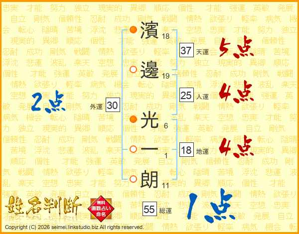 濱邊光一朗さんの天運は37画の5点!