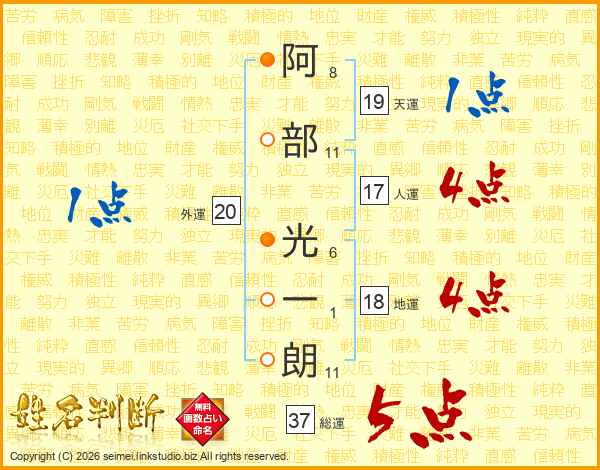 阿部光一朗さんの総運は37画の5点!