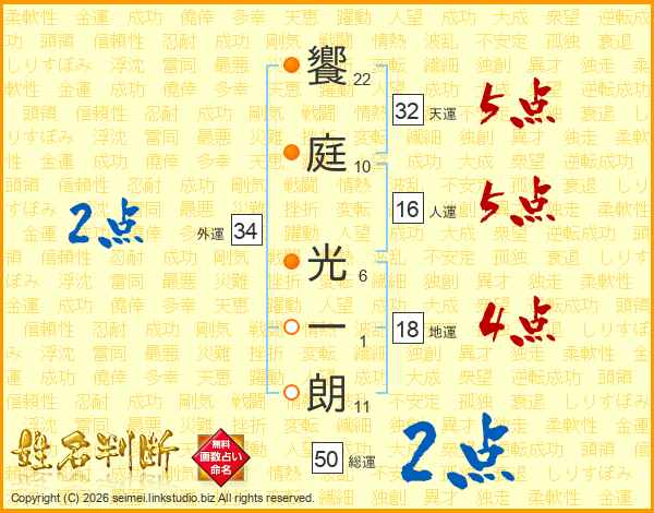 饗庭光一朗さんの天運は32画の5点!