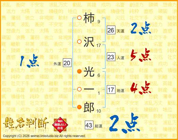 柿(9画)沢(17画) 光(6画)一(1画)郎(10画)