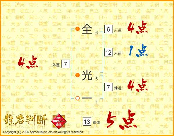 全光一さんの総運は13画の5点!