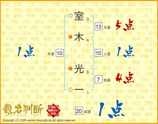 室木光一さんの総運は20画の1点!