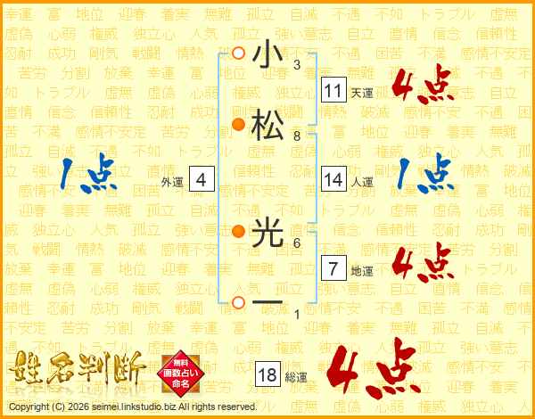 小松光一さんの総運は18画の4点!