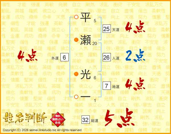 平瀬光一さんの総運は32画の5点!