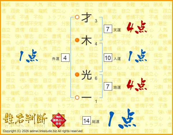 才木光一さんの総運は14画の1点!