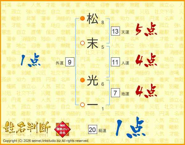 松末光一さんの天運は13画の5点!