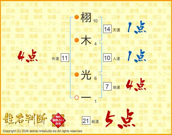 栩(10画)木(4画) 光(6画)一(1画)