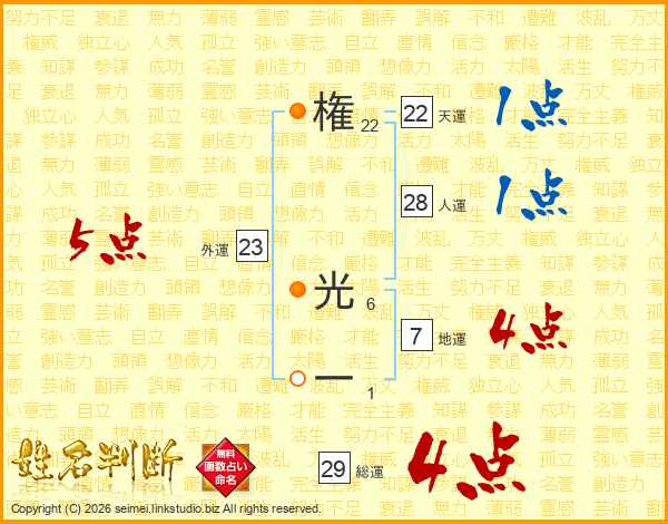 権光一さんの総運は29画の4点!