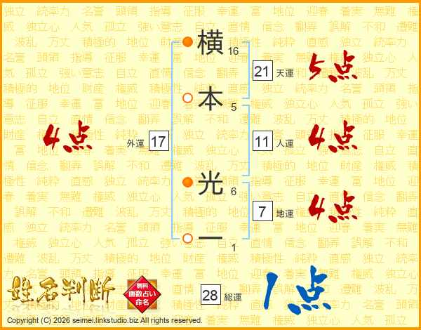横本光一さんの総運は28画の1点!