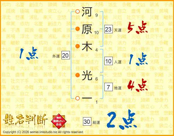 河原木光一さんの総運は30画の2点!
