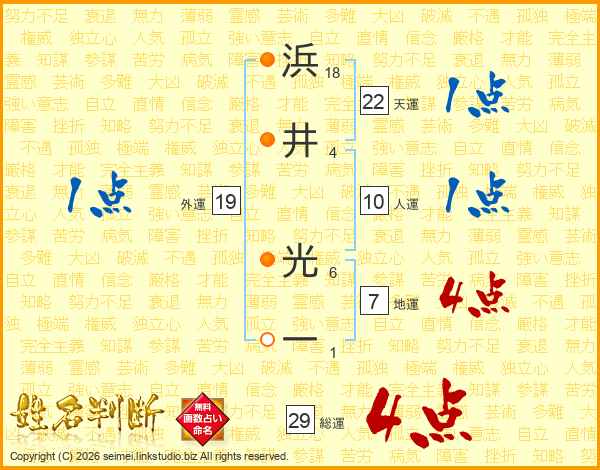 浜井光一さんの総運は29画の4点!