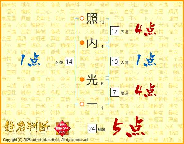 照内光一さんの総運は24画の5点!