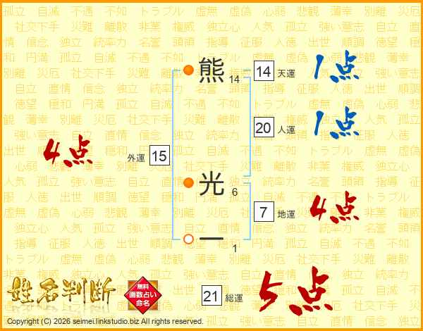 熊光一さんの総運は21画の5点!