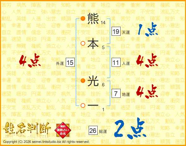 熊本光一さんの総運は26画の2点!