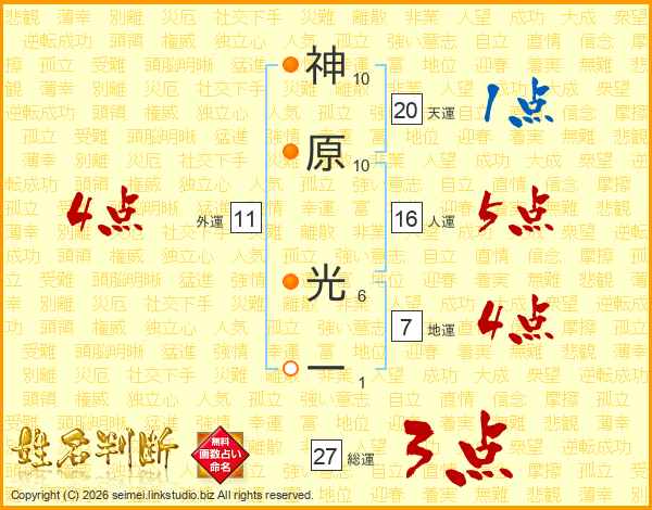 神原光一さんの総運は27画の3点!