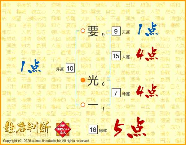 要光一さんの総運は16画の5点!