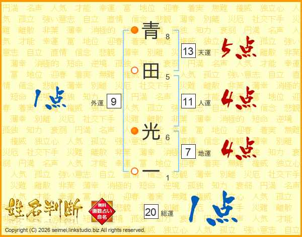 青田光一さんの総運は20画の1点!
