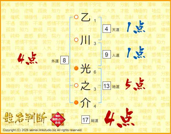 乙(1画)川(3画) 光(6画)之(3画)介(4画)
